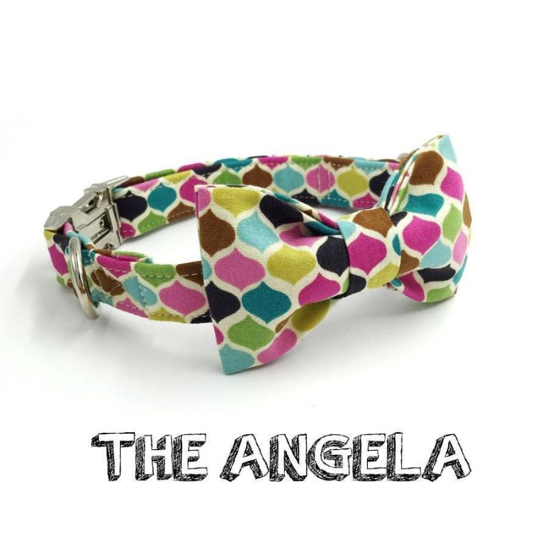 till skillnad från de flesta bågar gjorda för hundar är dessa traditionella dubbla bågar. varje fluga är handsydd och fäst på kragen med elastisk rem.