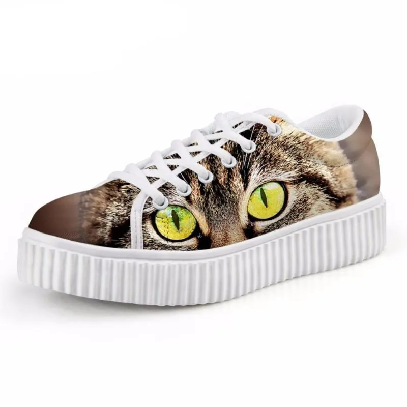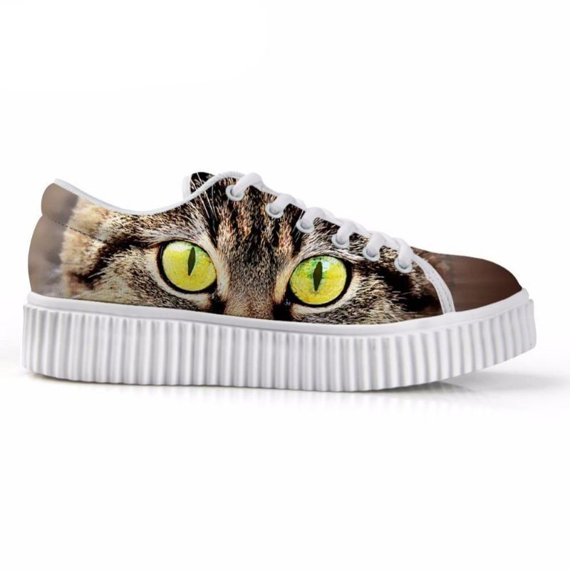 Avslappnade Gula Ögon Katt Tryck Platt Plattform Skor