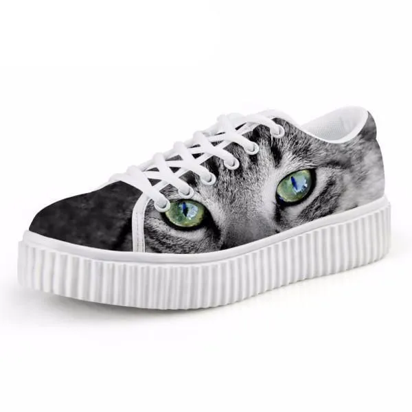 Avslappnade Klara Ögon Kattutskrifter Platt Plattform Skor