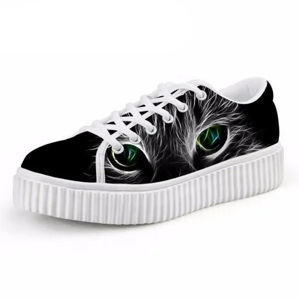 Avslappnade Mystiska Kattutskrifter Platt Plattform Skor