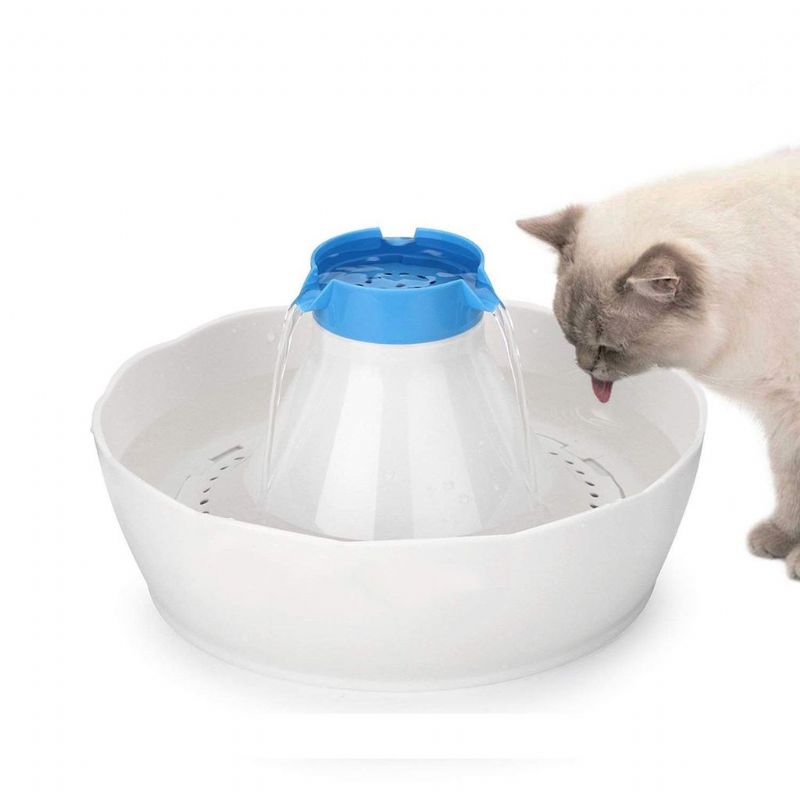 fontänen är gjord av bpa-fritt material, giftfritt och luktfritt, säkert för dina husdjur att dricka. pumpen håller vattnet cirkulerande genom det trefaldiga filtret, blockerar hår och skräp, avlägsnar dålig lukt och mjukar kranvatten.