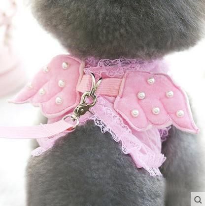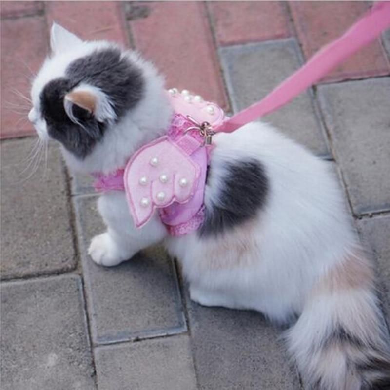 Rosa Katt Sele Ängelvingar Med Bly Koppel
