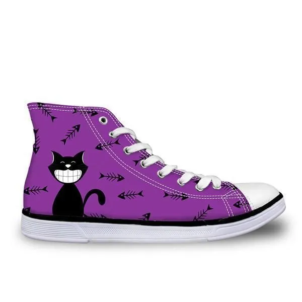 Söt Hög Topp Casual Smiley Katt I Violett Design Skor För Kvinnor