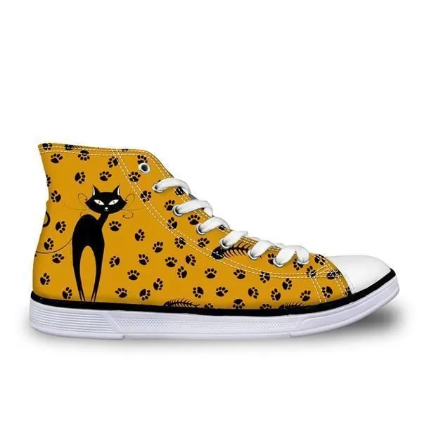 Söta Höga Toppavslappnade Gula Kattdesignskor För Kvinnor