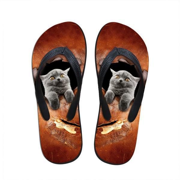 Söta Kvinnor Katt Tryck Strand Flip Flops Tofflor Sandaler