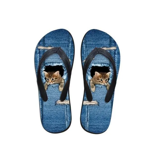 Söta Kvinnor Trötta Kattmönstrade Sandaler Med Flip-flops