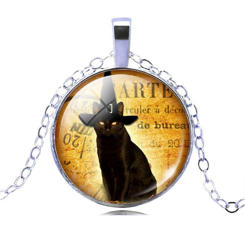 svart kattglas cabochon hänge halsband är det perfekta tillbehöret för att lägga till ett stänk av whimsy till alla kläder. vacker dekoration för dig själv!