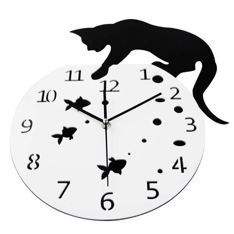 Väggklocka För Katt Och Fisk